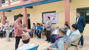 शिविरमा आयुर्वेद चिकित्सक डा.महेश भुसाल र औषधालयका प्रमुख जनैदारले स्थानियको स्वास्थ्य परीक्षण गर्नुभएको थियो ।