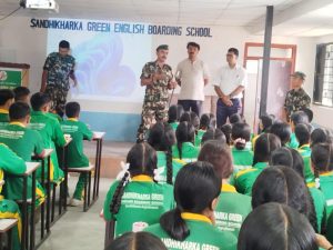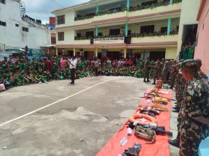 सन्धिखर्कमा रहेको नेपाली सेनाको वीर भद्रजंग गुल्मले विपद् पुर्व तयारी तथा प्रतिकार्य सम्बन्धी प्रशिक्षण एवं चेतनामुलक कार्यक्रम सम्पन्न गरेको छ । जिल्लाको सन्धिखर्क नगरपालीका २ चुत्रावेसीमा रहेको सन्धिखर्क ग्रीन इङ्लिस बोर्डिङ्ग स्कुलमा सुक्रवार भएको कार्यक्रममा वीरभद्र जंग गुल्म अर्घाखाँचीका सेनानी रिक्की पाण्डे सहितको टिमले बाढी पहिरो, आगलागी, भूकम्पलगायतका विपद् घटनामा कसरी बच्ने र समुदाय स्तरमा कसरी कामगर्ने भन्ने बारेमा अध्यास सहित प्रशिक्षण प्रदान गर्नुभएको बिद्यालयका सहायक प्रिन्सिपल नारायण भुसालले बताउनुभयो ।