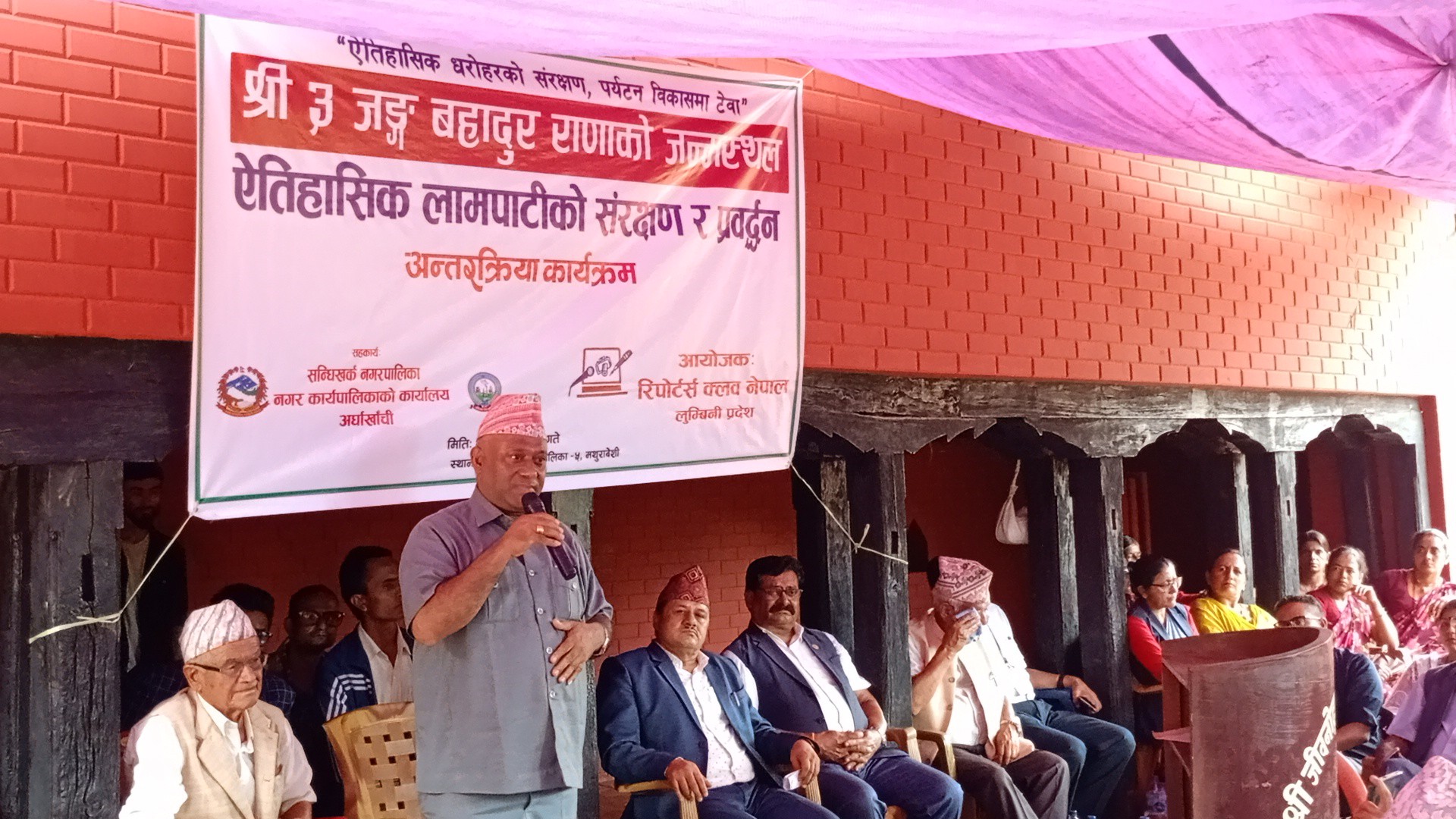 असार–१२, अर्घाखाँची – अर्घाखाँचीको सन्धिखर्क नगरप्रमुख कृष्ण प्रसाद श्रेष्ठले ऐतिहाँसिक लामपाटी दरबारको..